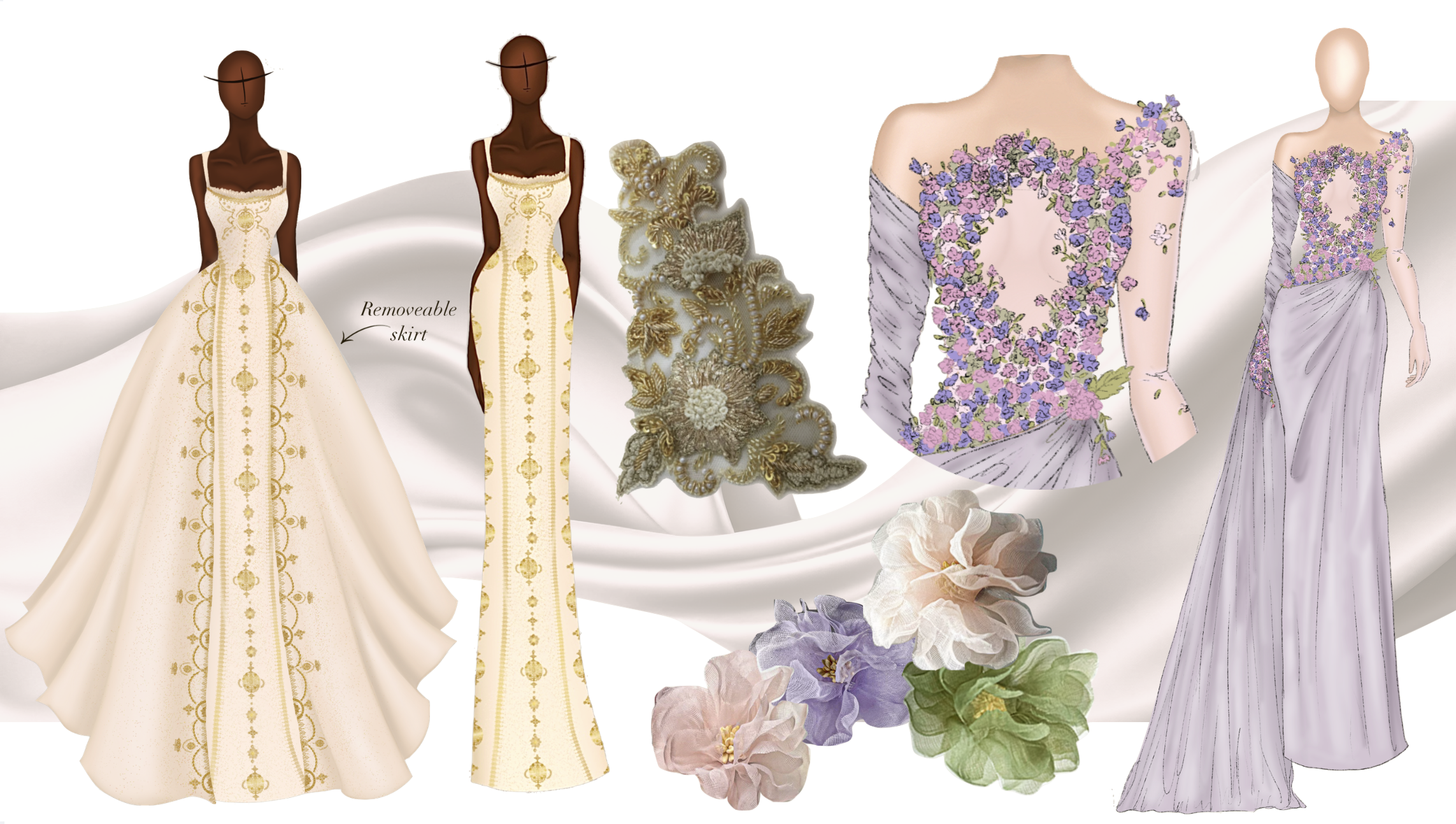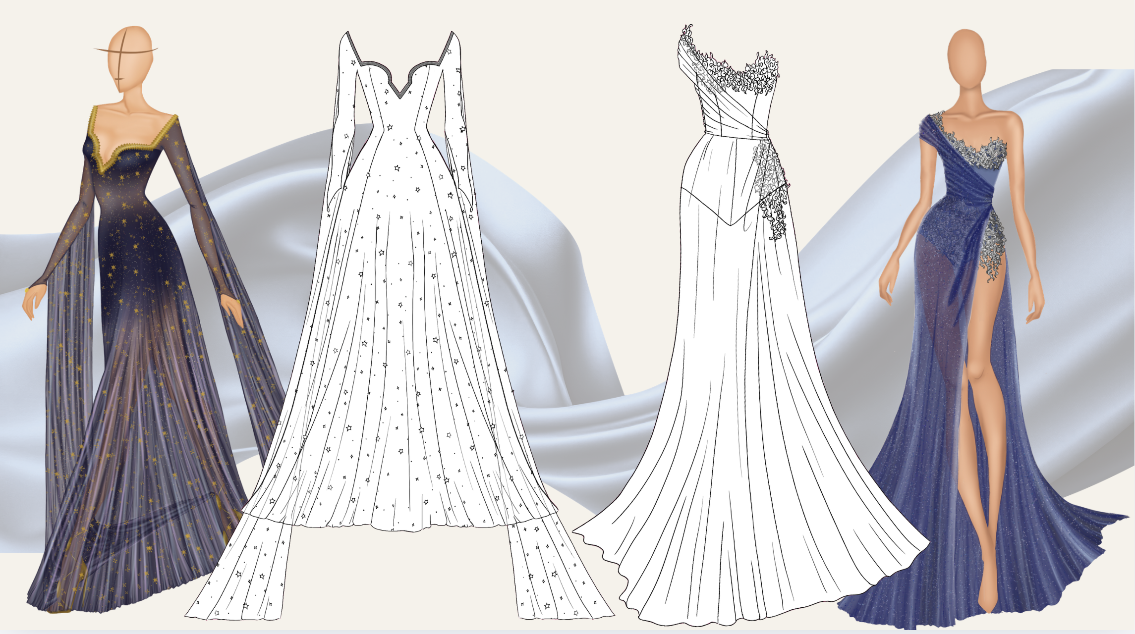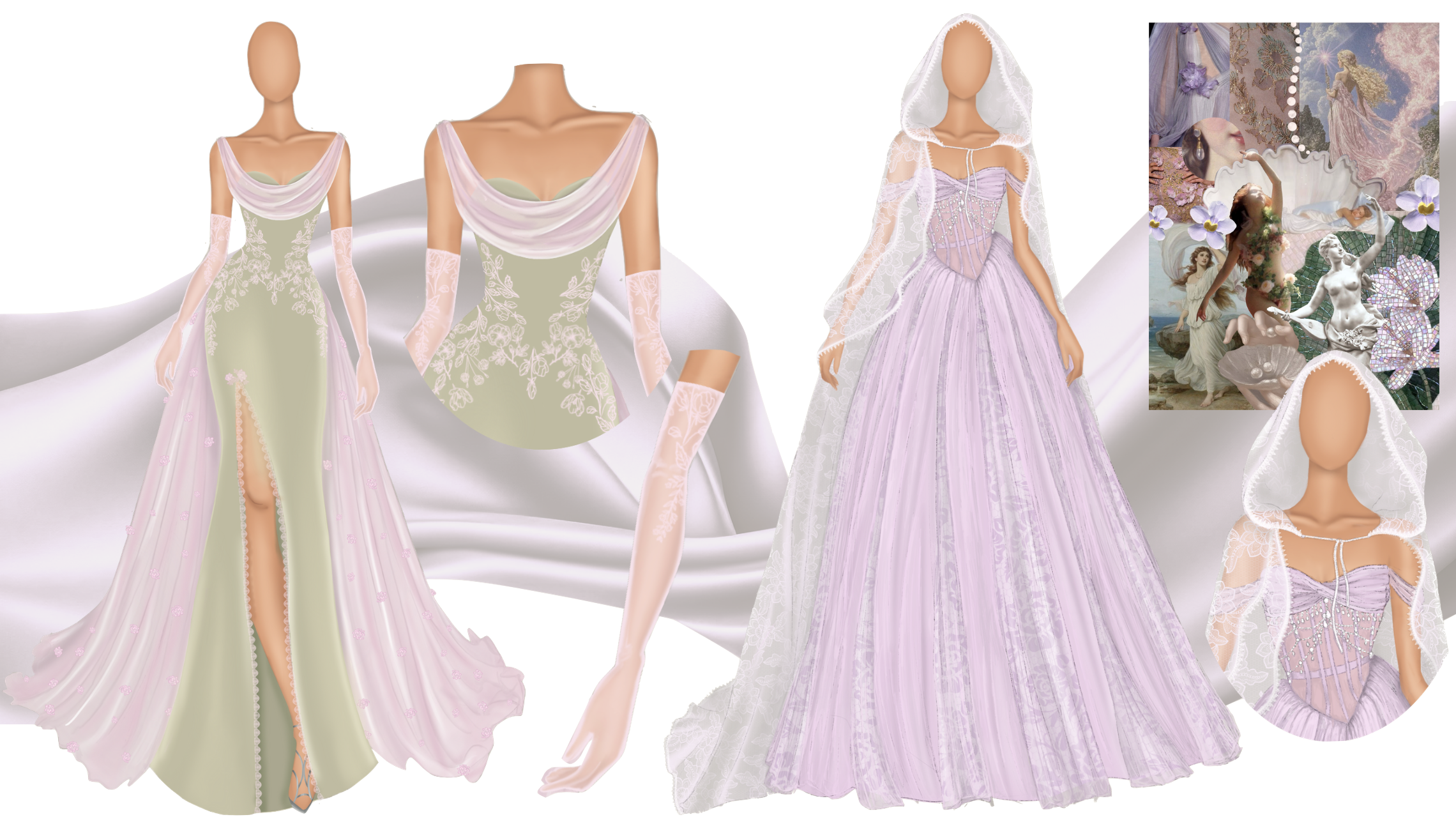 Elysium is a collection inspired by the ethereal beauty of forest and night-sky nymphs in Greek mythology—beings who embody grace, enchantment, and the eternal allure of nature. Each garment is designed to capture the essence of their ideal state, one which radiates perpetual grace, beauty, and harmony. Like the mythical paradise itself, Elysium invites the wearer into a world of enchantment, where elegance feels eternal and fantasy becomes reality.